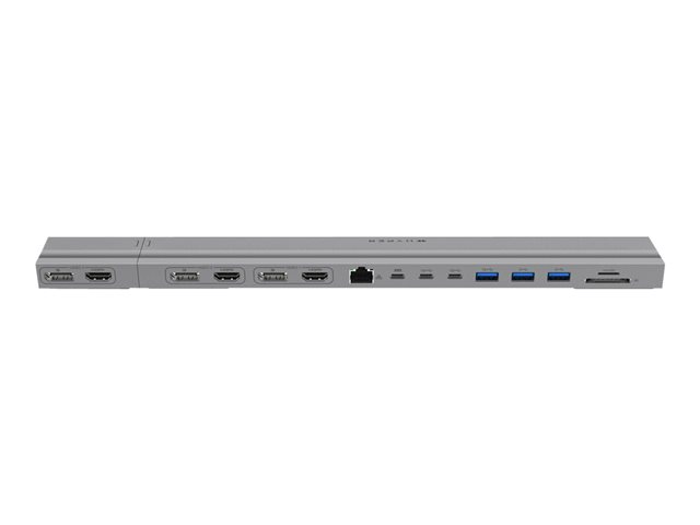 Conçue pour les créatifs d'élite, les monteurs vidéo ou les professionnels, la station d'accueil multi-écrans 4K pour MacBooks 13"-16" offre une connectivité maximale en permettant la prise en charge sans pilote d'un triple écran 4K 60Hz en natif et dispose de 15 ports pour l'extension des périphériques. Contrairement à la plupart des concurrents qui vous obligent à utiliser certains ports pour vous connecter, HyperDrive propose trois HDMI et trois DisplayPorts pour que les utilisateurs aient la flexibilité de créer la configuration qu'ils souhaitent. Construite en aluminium moulé avec précision, elle s'insère sous le châssis d'un MacBook, offrant des avantages ergonomiques, dissipant la chaleur et réduisant l'encombrement sur le bureau. Enfin, la station d'accueil est dotée d'un hub magnétique amovible que vous pouvez retirer pour assurer la compatibilité et la connectivité à deux écrans pour les MacBooks 13-14".