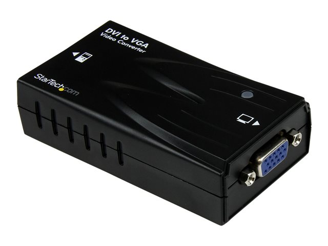 Le convertisseur vidéo haute résolution DVI, référence DVI2VGACON, vers VGA convertit un signal d'entrée vidéo DVI-D (numérique) en une sortie VGA (analogique), épargnant ainsi temps et argent en éliminant la nécessité d'acheter un nouvel écran numérique pour être compatible avec les périphériques ou les cartes vidéo DVI-D. Cet adaptateur compact offre la prise en charge de résolutions jusqu'à 1920x1200, vous permettant ainsi de tirer pleinement profit des capacités de votre moniteur VGA. Réelle solution plug-and-play, l'adaptateur DVI-D vers VGA est facile à installer. Il suffit de connecter le port de sortie DVI-D à l'adaptateur en utilisant le câble DVI inclus, puis de connecter un projecteur ou un moniteur VGA au port VGA situé sur l'adaptateur. Bénéficie de la garantie StarTech.com de 2-ans et de l'assistance technique à vie gratuite.