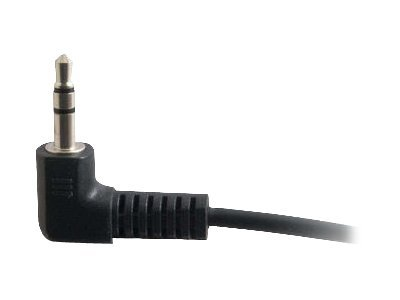 Le câble audio stéréo à angle droit (90°) 3,5 mm est spécifiquement conçu pour fournir une expérience audio excellente. Il relie la carte son d'un ordinateur, le lecteur CD portable ou un appareil audio mini-stéréo avec prises 3,5 mm à un haut-parleur multimédia. Ce câble est constitué de deux conducteurs en cuivre et d'un fil de masse. Les conducteurs et le fil de masse sont enveloppés par un blindage Mylar en aluminium qui empêche l'interférence EMI/RFI indésirable. Les connecteurs entièrement moulés et nickelés fournissent un excellent serre-câble pour une longue durée d'utilisation. Les connecteurs à angle droit (90°) limite l'encombrement de câble lorsqu'il est branché à une prise 3,5 mm.