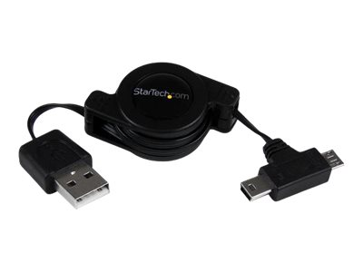 USB vers Mini USB / Micro USB - Câble Mini / Micro USB à Enrouleur - Donnée et Charge - M/M 76 cm - Câble USB - USB (M) pour mini USB type B, Micro-USB de type B (M) - 76.2 cm - rétractable - noir - pour P/N: USB2PCARBK, USB2PCARBKS, USBEXTAA10BK, USBEXTAA6BK, USBLT2PCARW, USBUB2PCARB