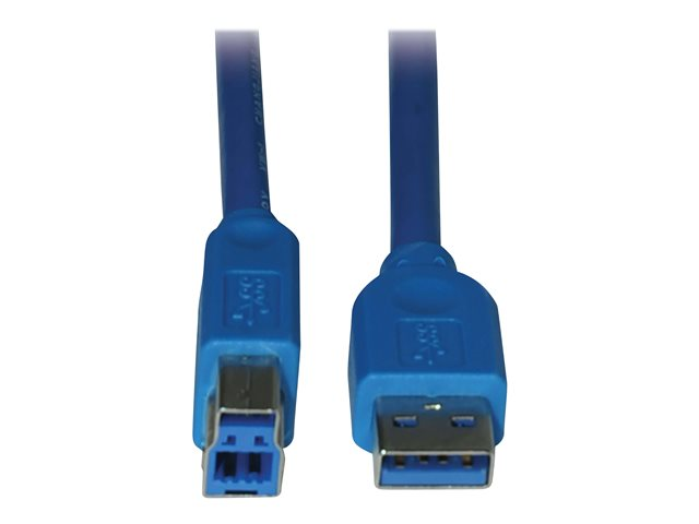 Description du produit Tripp Lite 10ft USB 3.0 SuperSpeed Device Cable 5 Gbps A Male to B Male 10' - câble USB - USB type A pour USB Type B - 3 m Type Câble USB Fonctions Débit de données de 5 Gbps Longueur 3 m Connecteur USB 9 broches type A - mâle Connecteur (deuxième extrémité) 9 pin USB Type B - mâle Normes de conformité USB / USB 2.0 / USB 3.0 Couleur Bleu Garantie du fabricant Garantie limitée à vie -