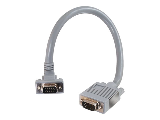 Gagnez un maximum de flexibilité en positionnant votre écran avec ce câble de connecteur coudé. Le connecteur à angle droit permet une installation même dans les emplacements les plus étroits; le câble se sépare vers le bas de ce connecteur. Ce câble VGA est idéal pour les appareils de présentation vidéo, les répartiteurs vidéo et les commutateurs KVM. Fabriqué à partir d'un câble d'une qualité supérieure, il utilise une combinaison de câble coaxial et à paires torsadées pour s'adapter à des longueurs de câbles jusqu'à 30 mètres sans surampflificateur (dans la plupart des cas), et sans les problèmes habituels de distorsion associés à de très grandes longueurs de câbles.