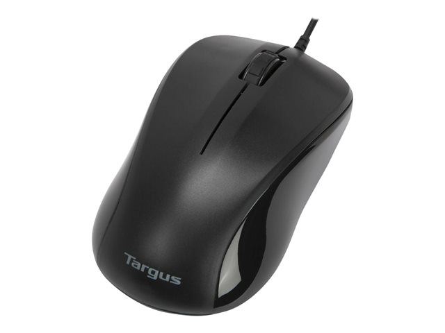 La souris optique USB de Targus avec adaptateur PS/2 est une souris de taille standard équipée de trois boutons et d'une molette de défilement.
