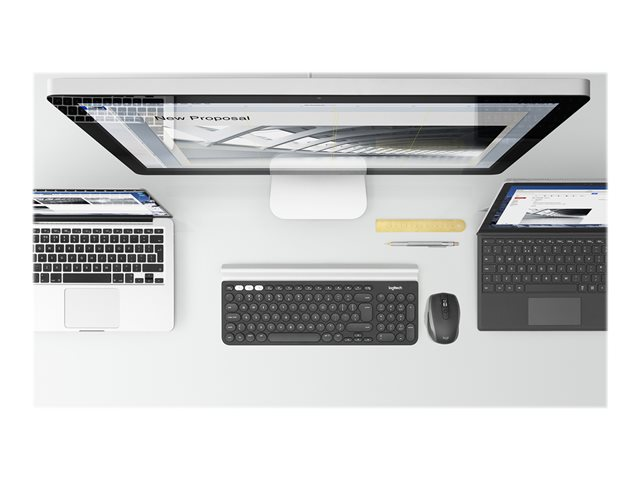 Souris - laser - 7 boutons - sans fil - Bluetooth, 2.4 GHz - récepteur sans fil USB - graphite