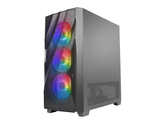 1 x casque téléphoniqueCartes mères prises en charge ATX, microATX, Mini-ITX Fonctionnalités du boîtier système Panneau frontal maillé, capable d'accueillir un radiateur de 120 mm à l'arrière, filtre antipoussière sur la partie inférieure, filtre à poussière supérieur magnétique, emplacement pour radiateur 240/280/360 mm sur la partie supérieure, emplacement pour radiateur 240/280/360 mm sur le panneau avant, contrôleur de ventilateur RGB, bouton de contrôle LED, filtre à poussière magnétique latéral Périphérique d'alimentation Pas d'alimentation Dimensions (LxPxH) 22 cm x 46.7 cm x 48.6 cm Poids 7.4 kg Garantie du fabricant Garantie de 2 ans -