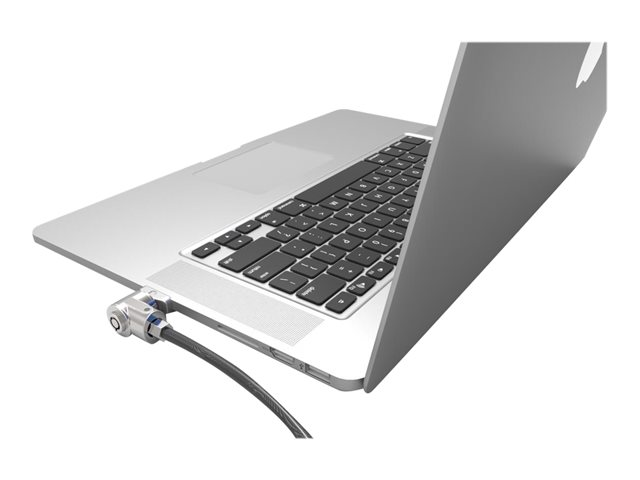 Description du produit Compulocks Universal MacBook Pro Lock Slot Adapter With Keyed Cable Lock - kit de sécurité Type de produit Kit de sécurité Contenu de l'emballage 2 clés, verrouillage de câble, Encoche de verrouillage, câble de sécurité (1,83m), pieds en caoutchouc Couleur Argent Conçu pour Apple MacBook Pro with Retina display 13.3" (Late 2012, Early 2013, Late 2013, Mid 2014, Early 2015) -