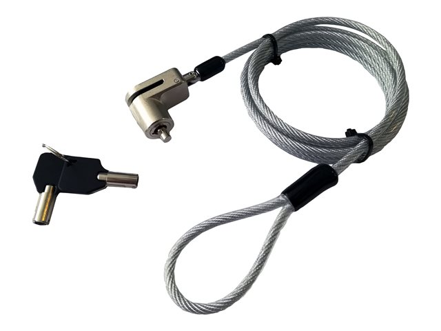 Câble de sécurité en acier fiable et résistant. Fixation sur un bureau ou une structure stable. Antivol livré avec 2 clés. Longueur du câble : 1,8 m.