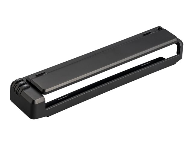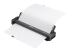 Ce guide papier se clipse facilement sur votre imprimante PocketJet pour faciliter l'alimentation en feuilles individuelles. La partie supérieure se replie pour révéler les guides de largeur réglable qui s'adaptent aux formats de papier ou d'étiquettes souhaités et permettent une alimentation et une impression droites. Rabattez la partie supérieure pour faciliter la manipulation, le transport et le stockage. La conception de l'imprimante vous permet d'accéder pleinement aux ports USB et d'alimentation situés sur le côté de l'imprimante, ainsi qu'aux boutons d'alimentation et de chargement du papier situés sur le dessus.