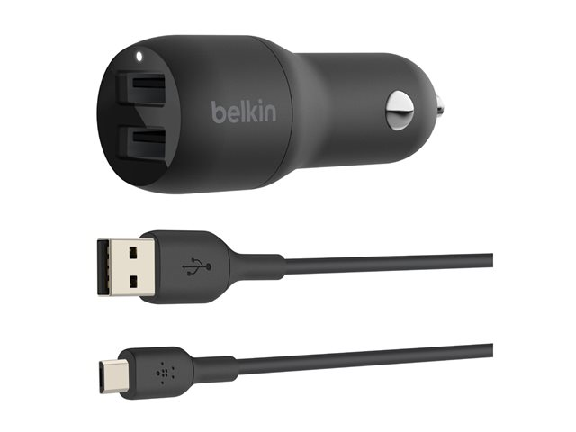 Description du produit Belkin BOOST CHARGE Double chargeur adaptateur d'alimentation pour voiture - USB - 24 Watt Type de Produit Adaptateur d'alimentation pour voiture Couleur Noir Type de prise Total 2: USB - sur le câble : Micro-USB Courant électrique max. 4.8 A Alimentation fournie 24 Watt Câbles Câble micro-USB - 1 m Garantie du fabricant Garantie de 2 ans -