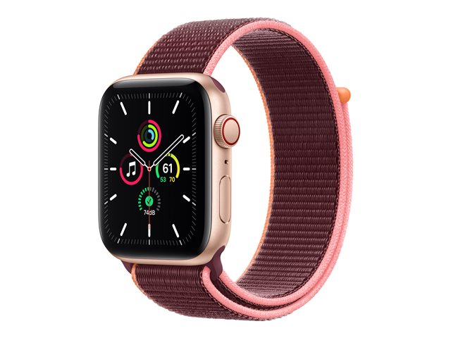 44 mm - or-aluminium - montre intelligente avec boucle sport - nylon tissé - lie-de-vin - taille du poignet : 145-220 mm - 32 Go - Wi-Fi, Bluetooth - 4G - 36.36 g