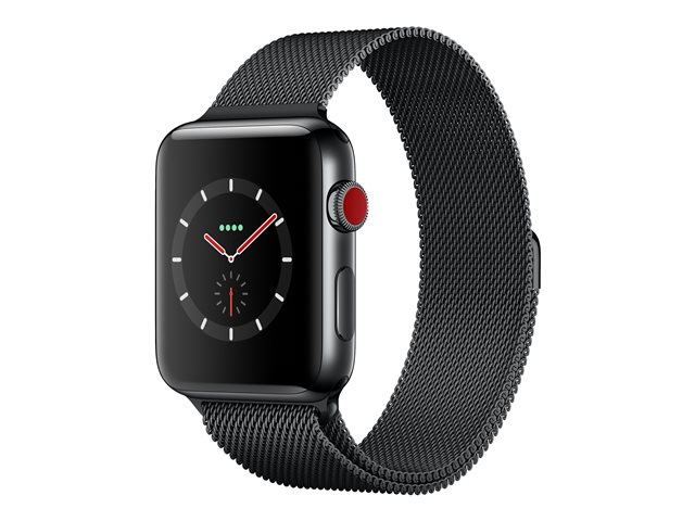 38 mm - boîtier en acier noir inoxydable - montre intelligente avec boucle milanaise - acier inoxydable - boîtier noir - taille de bande 130-180 mm - 16 Go - Wi-Fi, Bluetooth - 4G - 42.4 g