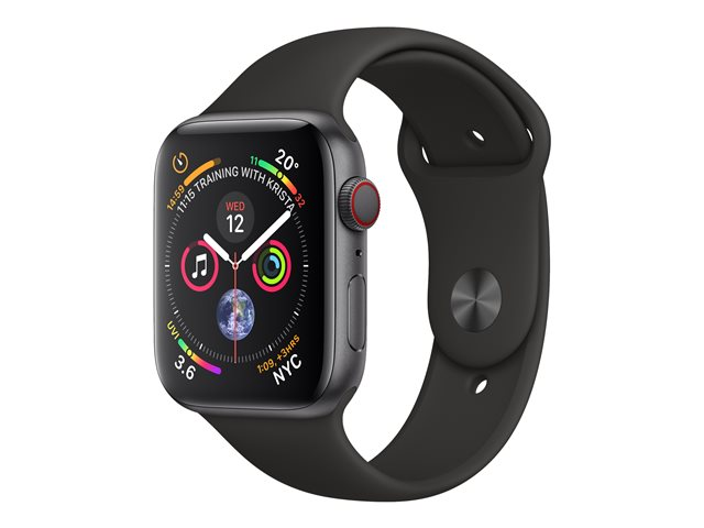 44 mm - espace gris en aluminium - montre intelligente avec bande sport - fluoroélastomère - noir - taille de bande 140-210 mm - 16 Go - Wi-Fi, Bluetooth - 4G - 36.7 g