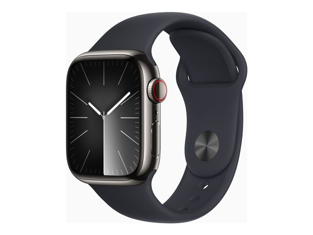 41 mm - acier inoxydable graphite - montre intelligente avec bande sport - fluoroélastomère - minuit - taille du bracelet : S/M - 64 Go - Wi-Fi, LTE, UWB, Bluetooth - 4G - 42.3 g