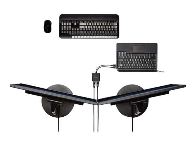 Plus portables que jamais, les nouvelles générations d'ordinateurs portables comportent cependant moins de sorties vidéo, et leur écran intégré est petit. Le hub MST résout ces problèmes en vous permettant de brancher deux écrans indépendants à un seul port Mini DP de votre ordinateur, ce qui facilite considérablement le fonctionnement multitâche. Grâce au hub MST, vous pouvez étendre votre ordinateur de bureau sur des moniteurs supplémentaires et diffuser sur chacun d'entre eux du contenu indépendant afin d'augmenter votre productivité tout en profitant d'un fonctionnement multitâche. Cela est idéal pour créer une solution de bureau partagé facile à connecter à une station d'accueil avec un jeu de périphériques comprenant un clavier et une souris sans fil. Vous pouvez également diffuser la même image sur plusieurs écrans dans des applications de visualisation à distance, comme l''affichage numérique.