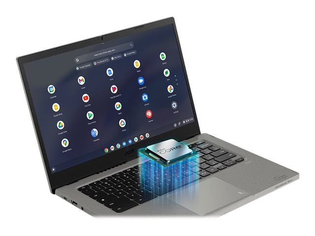 Acer Chromebook Vero 514 est un Chromebook aux performances et aux fonctionnalités exceptionnelles. Robuste, conçu pour durer et équipé du dernier processeur Intel Core de 12e génération, il applique le principe de développement durable en intégrant dans sa conception 30 % de plastique recyclé de post-consommation.