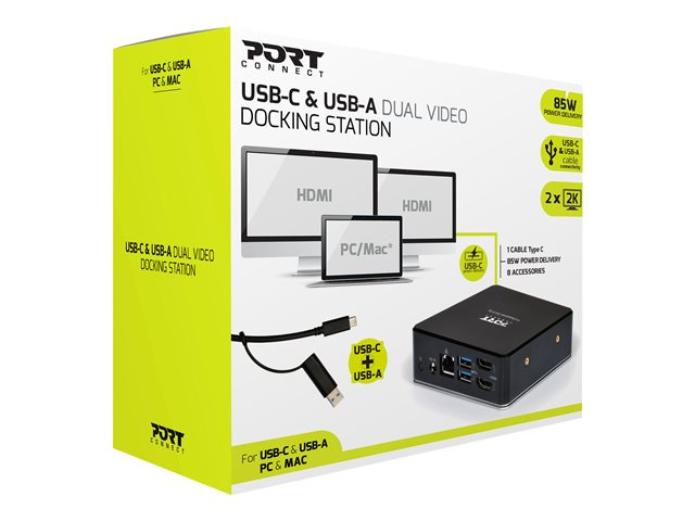 PORT connect USB-C & USB-A Dual Video Docking Station 2 X 2K - Station d'accueil - USB-C / USB 3.0 - 2 x HDMI - 1GbE - 100 Watt 901908