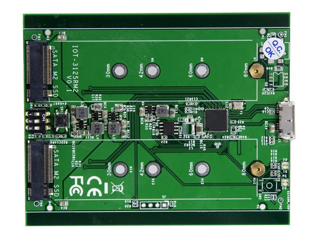 Directement alimenté par le port USB de votre appareil, le boîtier M.2 SATA RAID ne nécessite aucune alimentation externe. Il est livré avec deux câbles USB (USB-C vers Micro-B et USB-A vers Micro-B) pour faciliter sa connexion aux derniers ordinateurs portables et tablettes équipés d'un port USB-Type C , mais aussi aux appareils plus anciens. Indépendant du système d'exploitation, ce boîtier ne nécessite l'installation d'aucun logiciel ni pilote supplémentaire. Il est également compatible avec un port USB-C Thunderbolt  3.