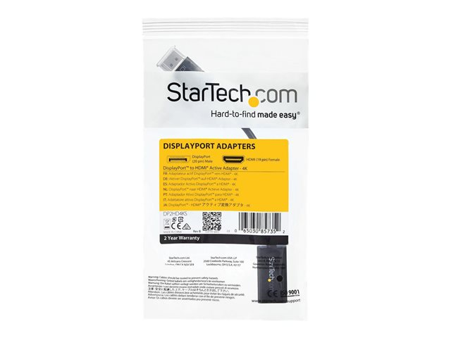 StarTech.com Adaptateur audio / vidéo DisplayPort 1.2 vers HDMI - Convertisseur actif DP vers HDMI - M/F - 4K 30 Hz - Noir - Convertisseur vidéo - DisplayPort - HDMI - pour P/N: DKM30CHDPD, DKM30CHDPDUE, SV231QDPU34K, TB3CDK2DP, TB3CDK2DPUE, TB3DKM2DPL DP2HD4KS