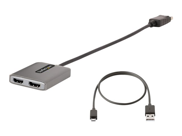 StarTech.com DP to Dual HDMI MST HUB, Dual HDMI 4K 60Hz, DisplayPort Multi Monitor Adapter with 1ft (30cm) Cable, DP 1.4 Multi Stream Transport Hub, DSC | HBR3, DP to 2x HDMI Ports - DP to HDMI Splitter (MST14DP122HD) - Adaptateur vidéo - DisplayPort mâle pour HDMI femelle - gris MST14DP122HD