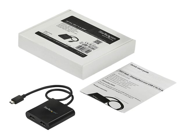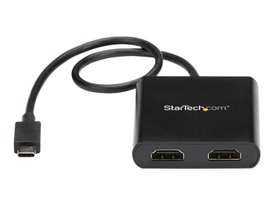 StarTech.com 2-Port Multi Monitor Adapter, USB-C to 2x HDMI Video Splitter, USB Type-C DP Alt Mode to HDMI MST Hub, Dual 4K 30Hz or 1080p 60Hz, Compatible with Thunderbolt 3, Windows Only - Multi Stream Transport (MSTCDP122HD) - Câble adaptateur - 24 pin USB-C mâle pour HDMI femelle - 44 m - noir - support 4K30Hz (3840 x 2160), support 2 560 x 1 600 (WQXGA) 60 Hz - pour P/N: TB33A1C
