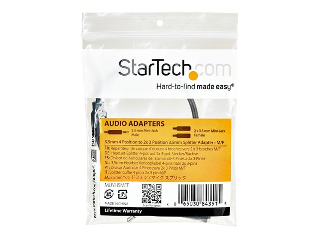 StarTech.com 4 Position to 2x 3 Position 3.5mm Headset Splitter Adapter - Répartiteur de casque micro - mini jack 4 pôles mâle pour jack mini femelle - 20 cm - noir - pour P/N: DK30A2DH, DK30CHDDPPD, DK30CHDPPDUE, MST30C2HDPPD, USB3SMDOCK4K, USB3VDOCKD MUYHSMFF