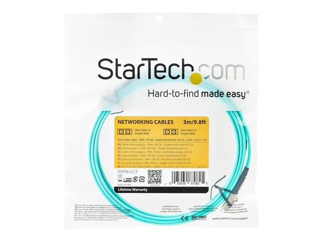 StarTech.com Aqua OM4 Duplex Multimode Fiber - 3m/ 9 ft - 100 Gb - 50/125 - OM4 Fiber - LC to LC Fiber Patch Cable (450FBLCLC3) - Câble réseau - LC multi-mode (M) pour LC multi-mode (M) - 3 m - fibre optique - duplex - 50 / 125 microns - OM4 - turquoise