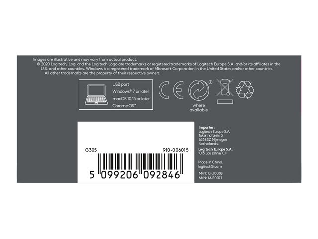 Logitech G G305 - Souris - optique - 6 boutons - sans fil - 2.4 GHz - récepteur sans fil USB - bleu 910-006015