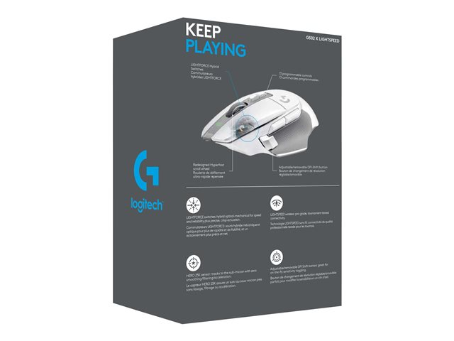 Logitech G G502 X LIGHTSPEED - Souris - optique - 8 boutons - sans fil - 2.4 GHz - récepteur USB Logitech LIGHTSPEED - blanc