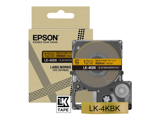 Epson LabelWorks LK-4KBK - Noir sur or - Rouleau (1,2 cm x 5 m) 1 cassette(s) bande d'étiquettes - pour LabelWorks LW-1000, 300, 400, 600, 700, 900, K400, Z5000, Z5010, Z700, Z710, Z900
