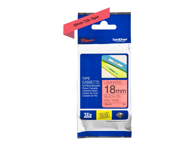 Brother TZe-441 - Adhésif standard - Noir sur rouge - rouleau (1,8 cm x 8 m) 1 cassette(s) ruban laminé - pour Brother PT-D600; P-Touch PT-1880, D450, D800, E550, E800, P900, P950; P-Touch EDGE PT-P750 TZE441