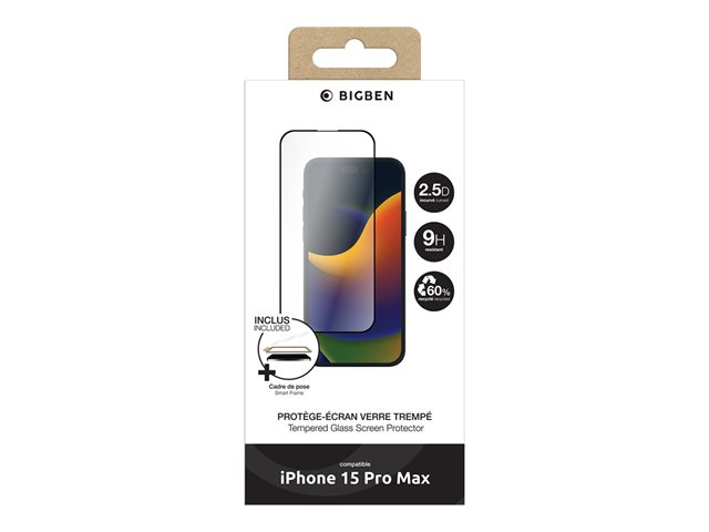 BIGBEN Connected - Protection d'écran pour téléphone portable - + SmartFrame - 2.5D - verre - couleur de cadre noir - pour Apple iPhone 15 Pro Max