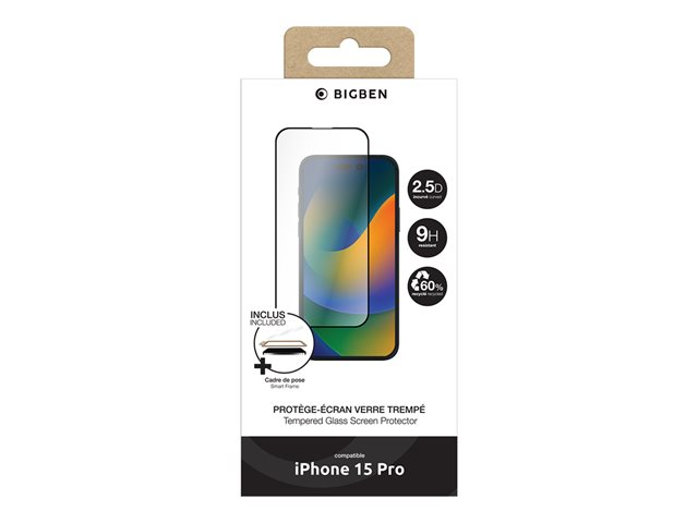 BIGBEN Connected - Protection d'écran pour téléphone portable - + SmartFrame - 2.5D - verre - couleur de cadre noir - pour Apple iPhone 15 Pro PEGLASSIP15P