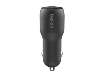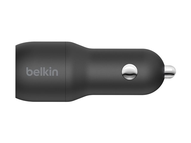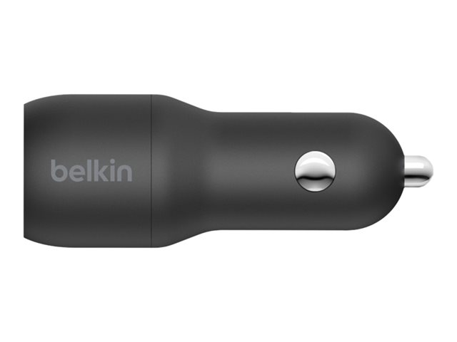 Belkin BOOST CHARGE Double chargeur - Adaptateur d'alimentation pour voiture - 24 Watt - 4.8 A - 2 connecteurs de sortie (USB) - sur le câble : USB-C - noir CCE001BT1MBK