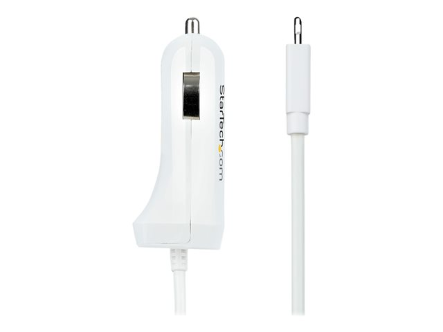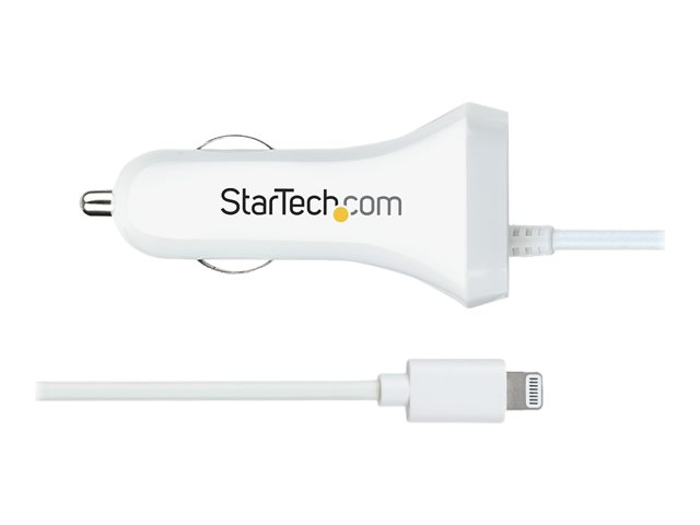 StarTech.com Lightning Car Charger with 1m Coiled Lightning Cable, 12W, White, 2 Port USB Car Charger Adapter for Phones and Tablets, In Car Apple iPhone/iPad Charger w/ Built-in Cord - Dual USB Car Charger (USBLT2PCARW2) - Adaptateur d'alimentation pour voiture - 12 Watt - 4.2 A - 2 connecteurs de sortie (USB, Lightning) - blanc USBLT2PCARW2