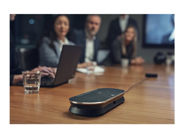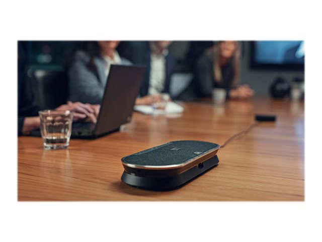 Fédérez vos collègues grâce à un speakerphone évolutif premium Bluetooth adapté pour des réunions jusqu'à 16 personnes, en présentiel. Faites-vous clairement comprendre grâce à six microphones adaptatifs dotés d'une technologie de formation automatique de faisceaux qui isolent les voix humaines des effets de la réverbération et des bruits ambiants. Profitez d'un speakerphone supérieur au son remarquable et naturel.