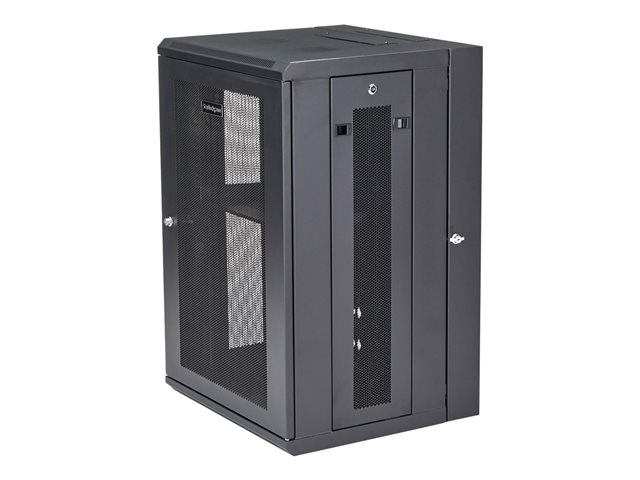 StarTech.com 18U 19" Wall Mount Network Cabinet, 16" Deep Hinged Locking IT Network Switch Depth Enclosure, Assembled Vented Computer Equipment Data Rack with Shelf & Flexible Side Panels - 18U Vented Cabinet (RK1820WALHM) - Armoire de rack - montable sur mur - noir - 18U