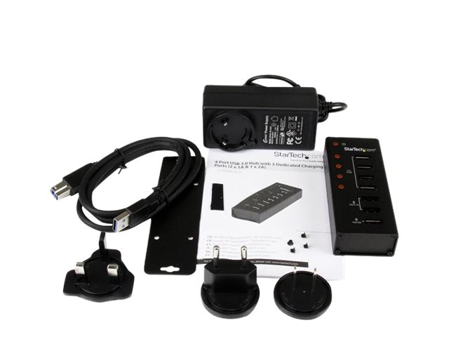 StarTech.com Hub USB 3.0 Alimenté de 4 ports avec Station de Recharge de 3 ports USB (2 x 1A, 1 x 2A) - Boîtier en Métal à Fixation Murale - Concentrateur (hub) - 4 x SuperSpeed USB 3.0 - de bureau - pour P/N: PEXUSB3S3GE, SVA12M5NA, USB312SAT3CB, USB315CB2M, USBLT1MWS, USBLTM1MBK, USBLTM1MWH ST4300U3C3