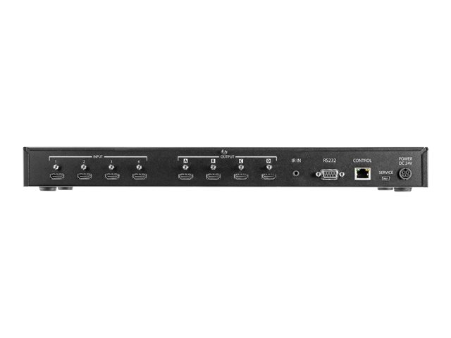Ce commutateur de matrice HDMI 4x4 vous permet de partager quatre sources vidéo HDMI entre quatre écrans ou vidéoprojecteurs indépendants, et de basculer sur la source active sur chaque périphérique d'affichage.